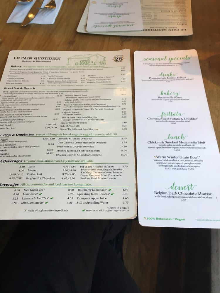 Le Pain Quotidien Menu (2025 Update)